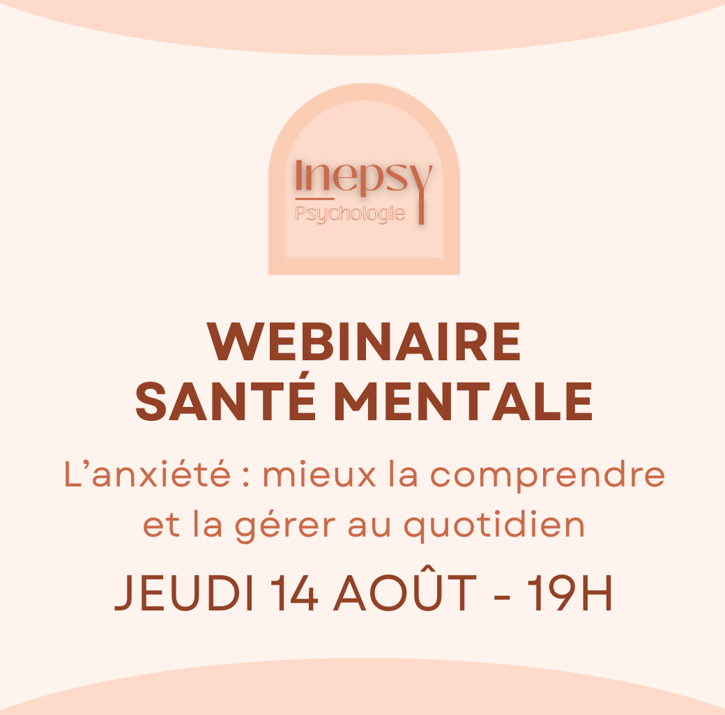Marre de subir l’anxiété ? 1h pour reprendre le contrôle. Webinaire en ligne pour mieux comprendre cet état mais surtout retrouver calme et confiance au quotidien.